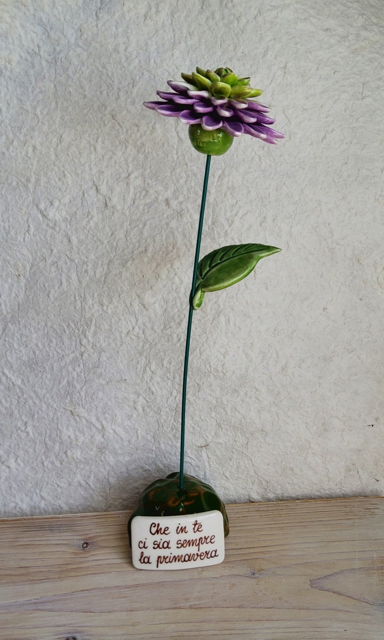 Questi bellissimi fiori in ceramica sono un'elegante aggiunta a qualsiasi decorazione. Realizzati con precisione artigianale, questi fiori sono perfetti per aggiungere un tocco di classe e originalità ai tuoi spazi. Grazie alla loro resistenza e durata, potrai godere della loro bellezza per molto tempo.Fiore con supporto in ceramica. Misura variabile massimo 26 cm. Diametro fiore 6,5 cm.