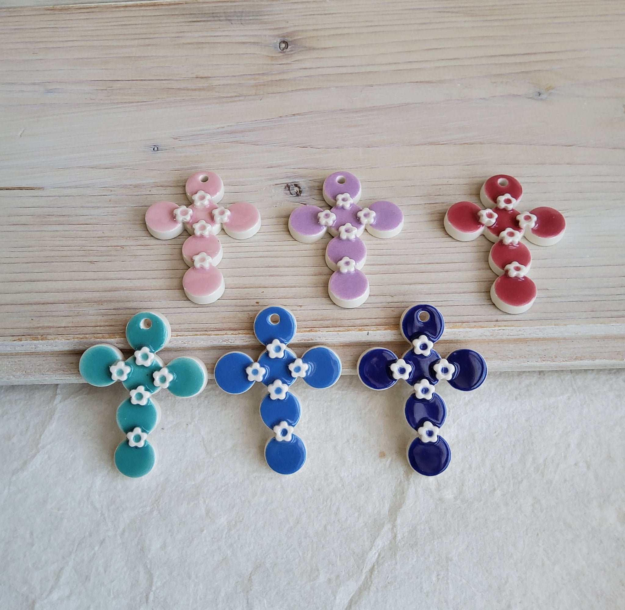 Appendino a forma di croce fatto interamente a mano. Perfetto ricordo di Prima Comunione.