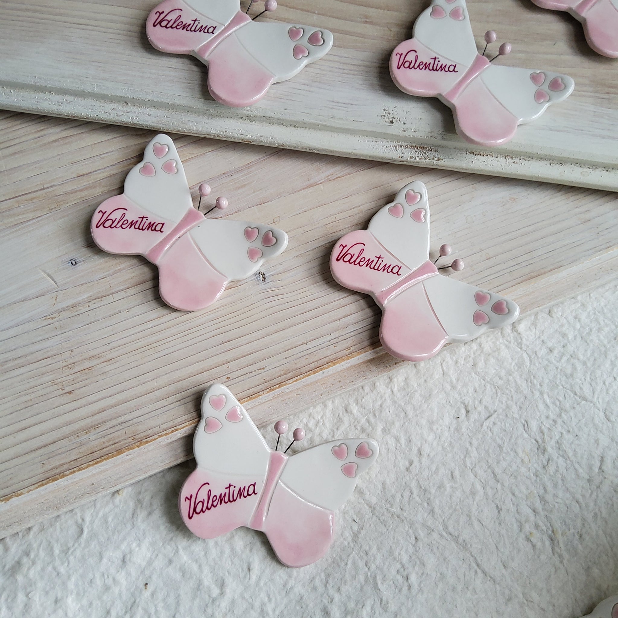Questa farfalla di ceramica a calamita è perfetta per decorare la tua casa o come porta confetti per matrimoni e feste. Aggiungi un tocco di grazia e bellezza alle tue celebrazioni con questa farfalla che è anche un simbolo di amore e felicità. Misure 5x7 cm.