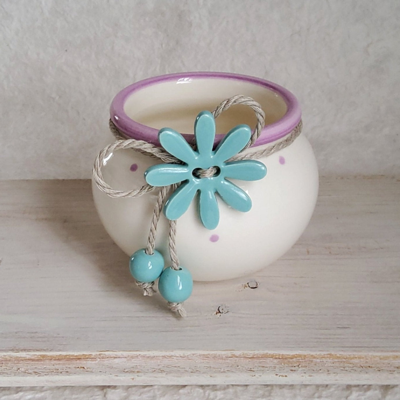 Caspo' con fiore a bottone. Indimenticabile regalo per giorno speciale. Ideale come porta piante, porta oggetti ed altro.