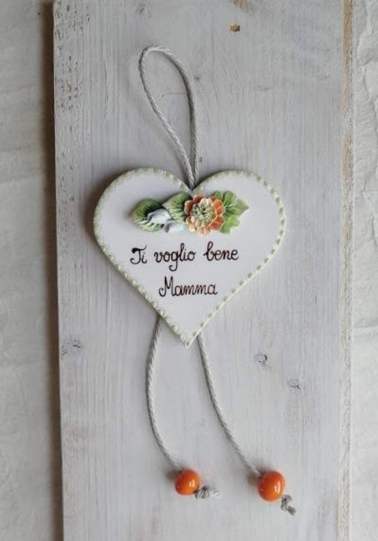 Appendino cuore in ceramica decorato con fiori. Un'aggiunta elegante e romantica al tuo spazio. Realizzato con materiali di alta qualità per garantire durata e bellezza. Aggiungi un tocco di stile e amore alla tua casa con questo appendino cuore.Cuore misura 12 cm ca.