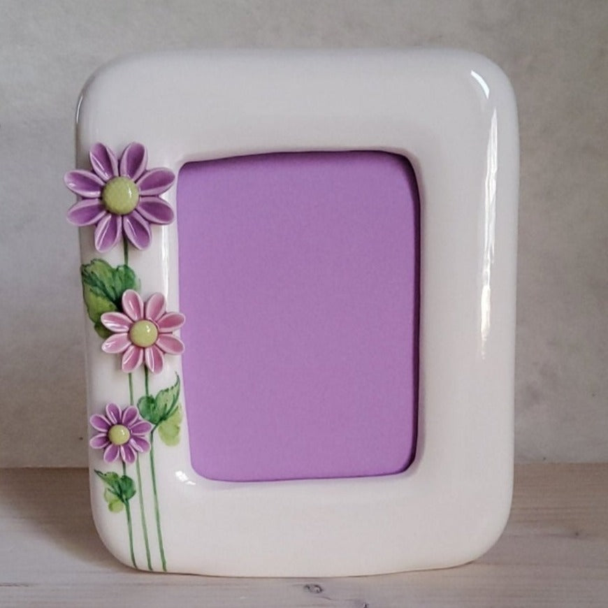 Portafoto con fiori colorati a tema lilla/rosa disponibile in varie misure.